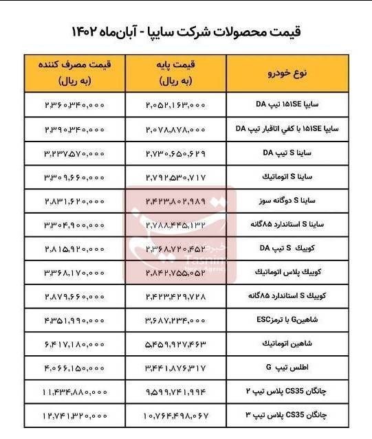 قیمت جدید ۱۴ محصول سایپا با اعمال استانداردهای ۸۵گانه در آبان ماه امسال اعلام شد.